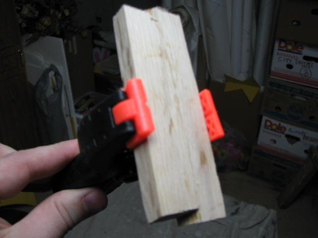 | 7. (4/13/2007) The next step was to glue the boards together. Because I have no experience in wood working I had to do some research on the type of glue to use. I chose Gorilla Glue for a couple of reasons: a. It had longer "work time" or "open time" than the other glues (white, yellow, etc...). Since I've never done this before, I felt I needed the extra time to work with getting the wood set correctly. b. It is 100% waterproof. So when condensation builds on on the scope the Gorilla Glue should hold up fine. | |