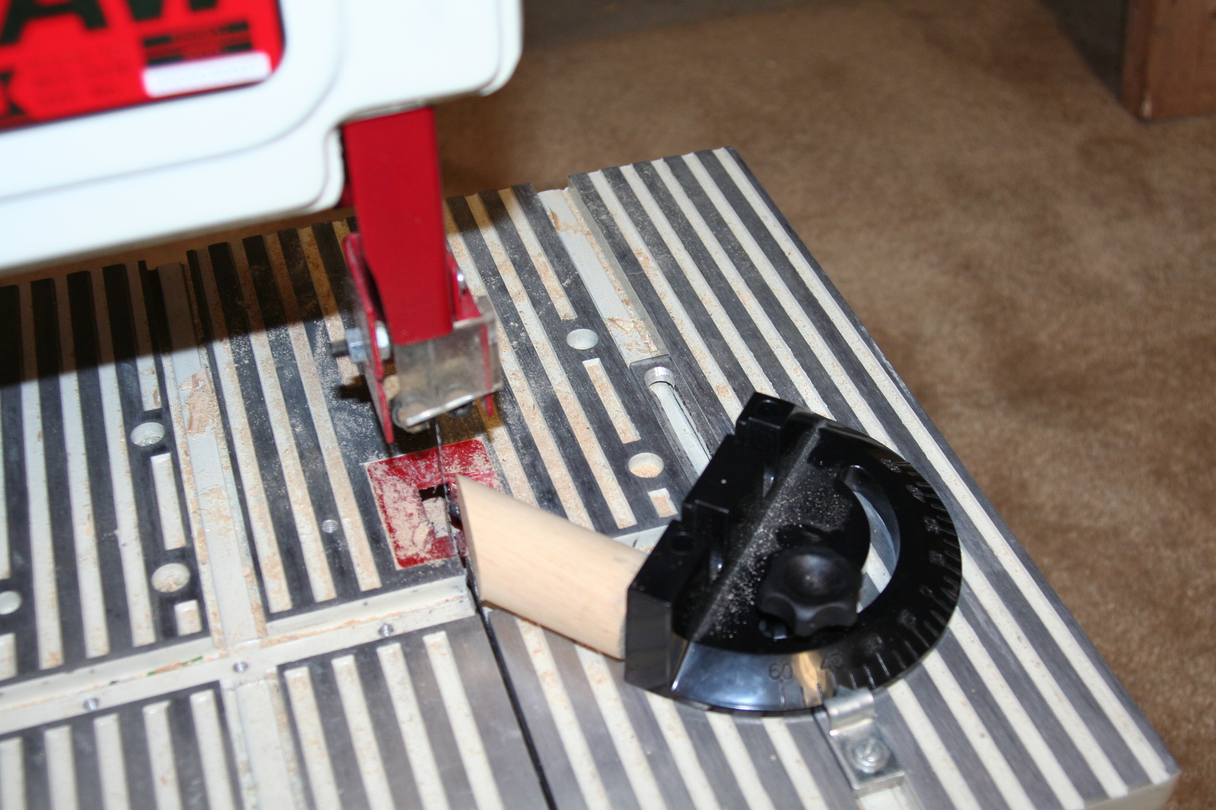| 2. (3/19/2007) I ran the boards through the a table saw that was set to as close to 22.5 degrees as possible. It took some time to get try and get the angle. Unfortunately, this did not work. When I tried to put the pieces together they did not line up properly. With a total of 16 angles (8 x 2) there is no room for error and I needed to take another approach. | |